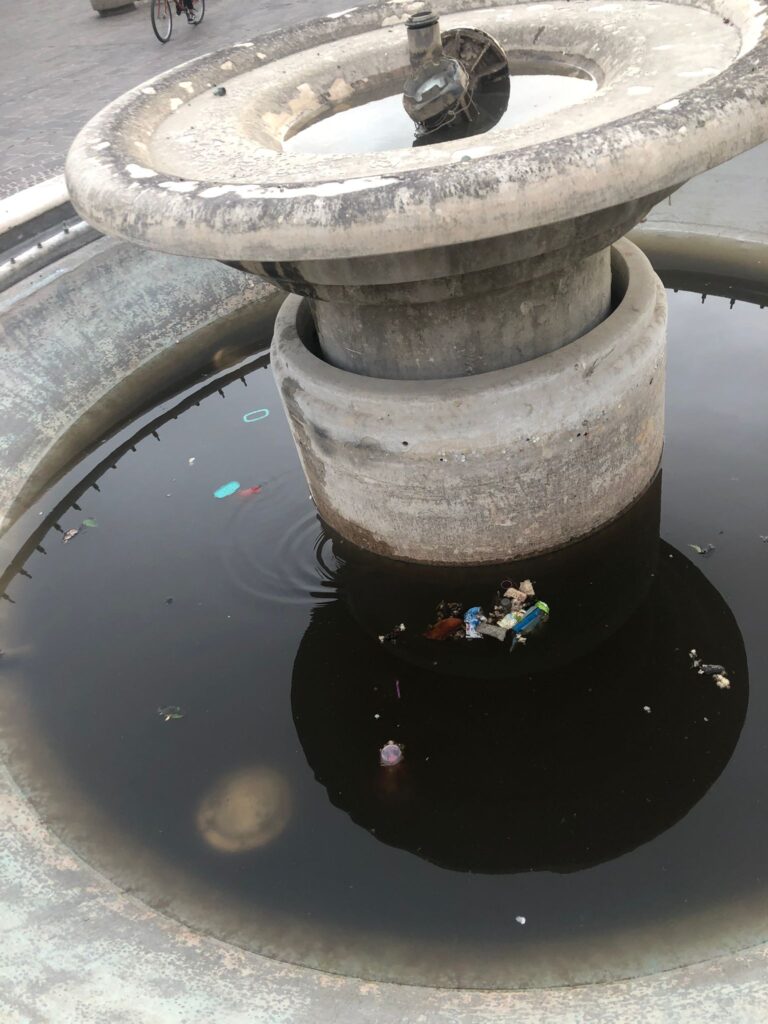 «Zero manutenzione e scarsa igiene della fontana e dei tombini, la situazione ormai in piazza è completamente fuori controllo»: la denuncia arriva dai commercianti di piazzale Marconi, una delle piazze più identitarie
