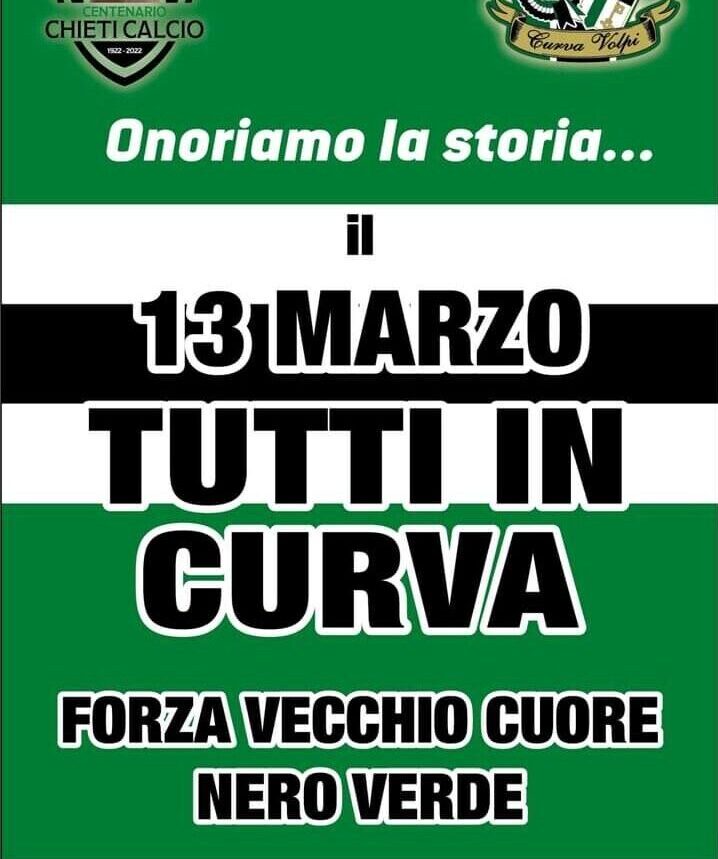 Dopo l’indimenticabile festa di ieri in Curva Volpi, un altro importante appuntamento è fissato per sabato prossimo 19 marzo su iniziativa del Comitato per il Centenario del Chieti presieduto da Stefano Marchionno.