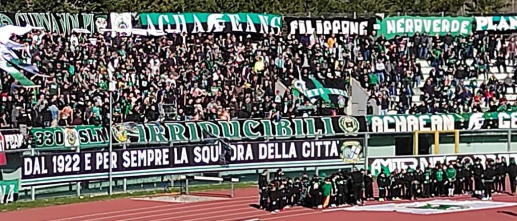 Duemila persone, forse più, e una scenografia altamente spettacolare. La festa della Curva Volpi, oggi allo stadio Angelini, organizzata dagli ultrà neroverdi in sinergia con il Comitato per il Centenario del Chieti
