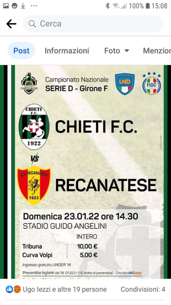Già nelle locandine è stata battezzata “partita inaugurale del Centenario”. Chieti-Recanatese di domenica 9 gennaio sarà la prima gara del 2022 (con la ripresa del campionato dopo la pausa festiva) ed anche