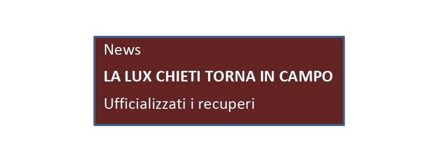 Definito il calendario dei tre recuperi che renderanno frenetico per la Lux Chieti Basket il periodo tra fine anno e prossimo gennaio. Queste le date: 30 dicembre (20.30) Allianz Pazienza San Severo-Lux
