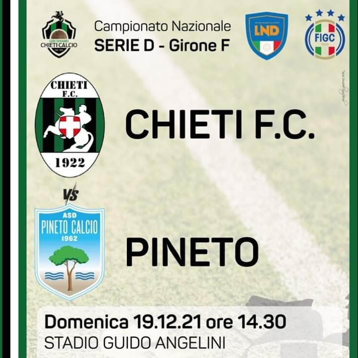 Domani il Chieti è atteso dall’ultima partita casalinga dell’anno 2021. Grande evento per l’occasione: il derby contro il Pineto, una delle formazioni più titolate del girone F di serie D (già da