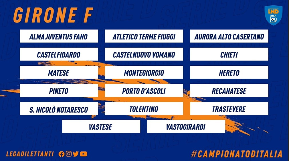 Previsioni rispettate. Il Chieti è stato inserito nel girone F della serie D, insieme alle altre abruzzesi. La composizione “geografica” è grosso modo quella tradizionale. E’ un raggruppamento al momento “zoppo” nel