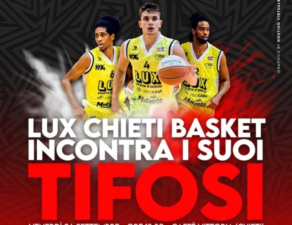 La Lux Chieti Basket incontra i tifosi. Domani, venerdì, alle18.30, nell’elegante cornice del Caffè Vittoria (tra gli sponsor del club) coach Massimo Maffezzoli e i biancorossi si presenteranno alla città in vista