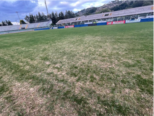Un’estate trascorsa senza nemmeno curare l’ordinaria manutenzione ha ridotto in condizioni pietose il manto dello stadio Angelini. Larghe sono le zone ormai prive di erba, qua e là macchie gialle, superficie con