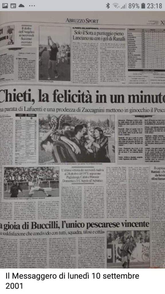 Sono passati 20 anni ma il ricordo custodito nel cuore dei tifosi neroverdi è vivo come nessun altro. Il 9 settembre 2001 il Chieti conquistava un successo storico (sì, stavolta è da