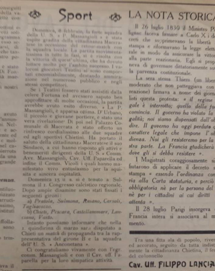 L’8 febbraio 1925 la Pippo Massangioli restituì alla Maceratese la visita che in precedenza i biancorossi marchigiani avevano fatto ai neroverdi (vincendo alla Civitella). Anche questo retour-match si concluse con la vittoria