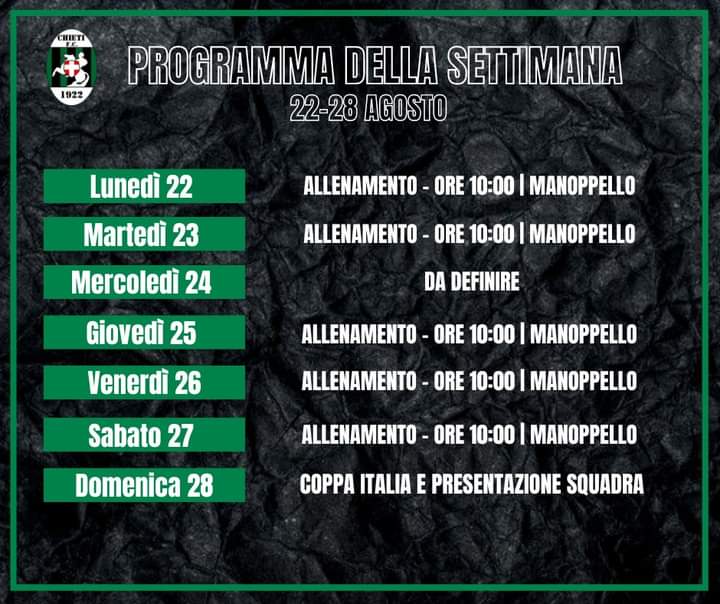 Il Città di Chieti prepara la prossima stagione con rinnovato entusiasmo ed ha fissato ambiziosi obiettivi. “La società neroverde (fonte pagina fb del club), con l’inesauribile operato del ds Andrea Del Grosso,