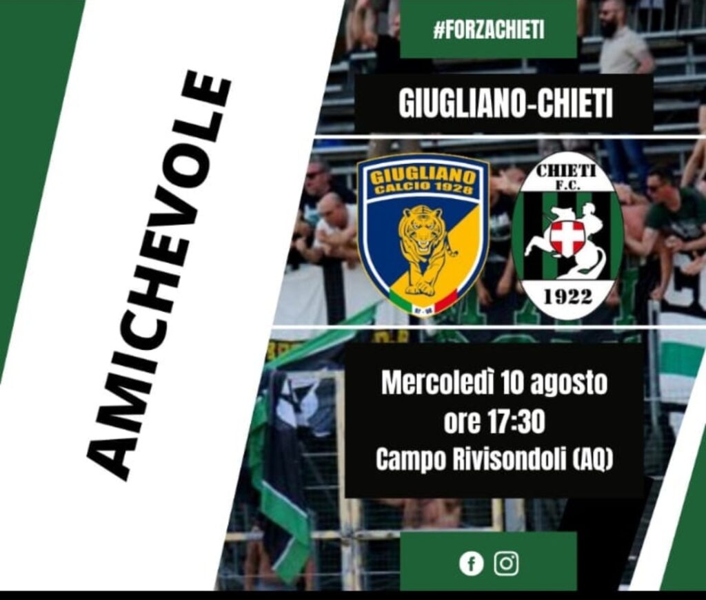 I l “nuovo” Chieti si presenterà ufficialmente dopodomani, mercoledì, 10 agosto. E’ stata organizzata un’amichevole sul campo di Rivisondoli (ore 17.30) contro il Giugliano, neo promosso in serie C. (o Lega Pro