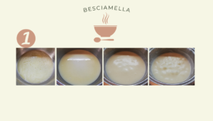 In una ciotola unite la purea di zucca con la besciamella, i tuorli d’uovo, il formaggio grattugiato e mescolate bene per amalgamare tutti gli ingredienti.