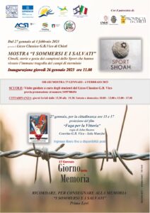 Dal 27 gennaio al 4 febbraio il Convitto-Liceo G.B. Vico, il Club per l’Unesco, il Centro Studi Sport&Valori, di Chieti, in collaborazione con l’International Football Museum, presentano la Mostra “I Sommersi e i Salvati”: cimeli, storie e gesta dei campioni dello Sport che hanno vissuto l’immane tragedia dei campi di sterminio. L’Inaugurazione della mostra è in programma giovedì 26 gennaio alle ore 11.