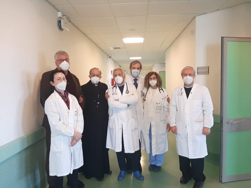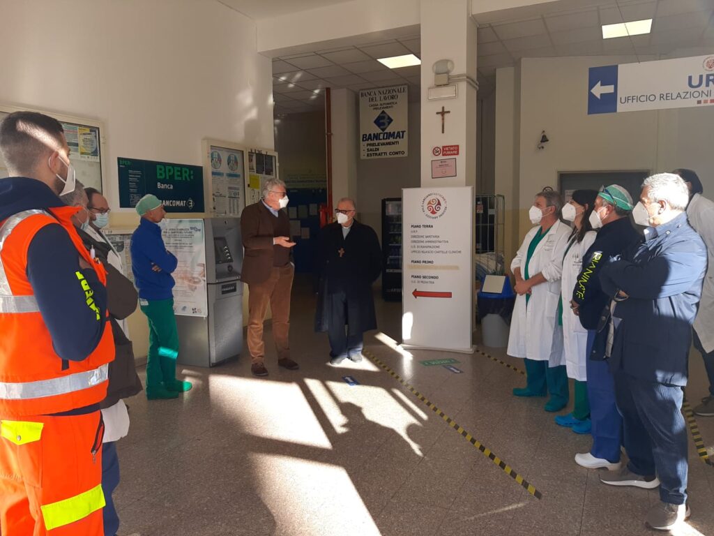 “Abbiate coraggio e forza, come ebbero Maria e Giuseppe, che cambiarono il mondo come voi potete farlo in questi nostri luoghi. Sappiate curare e prendervi cura, consolare e accompagnare”. Queste le parole rivolte agli operatori dell’ospedale di Lanciano dall’Arcivescovo Emidio Cipollone, che insieme al Direttore generale della Asl Thomas Schael questa mattina ha incontrato il personale per un informale e caloroso momento di scambio di auguri. “Gli operatori sono la nostra forza – ha detto il Direttore – e nella circostanza delle Festività vogliamo far sentire loro tutta la nostra vicinanza”. E’ seguita, poi, una visita alle unità operative maggiormente sotto pressione in questi giorni per via dell’influenza: in Pronto Soccorso, con il nuovo Direttore, Nicoletta Fini, in prima linea, e in Pediatria, dove Schael e Monsignor Cipollone hanno voluto portare un saluto a tutti i bimbi ricoverati e alle loro mamme. E’ stato un incontro tenerissimo con i piccoli pazienti, alcuni anche di pochi mesi, per i quali, come ha spiegato il responsabile dell’Unità operativa Nicola Ranieri, il virus influenzale è stato particolarmente aggressivo. Ma a consolare i bambini ci hanno pensato, nei giorni scorsi, le numerose associazioni che hanno portato loro in dono tantissimi giochi per alleviare il disagio del ricovero.