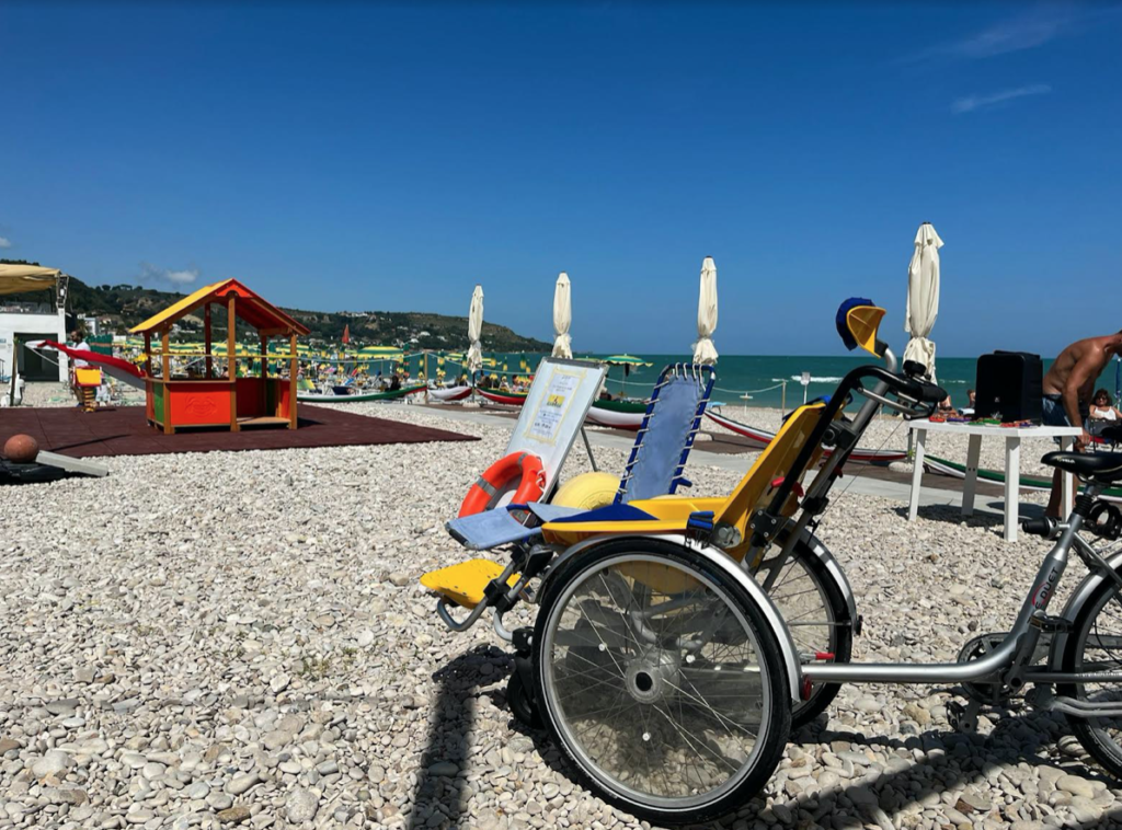Nuovi ombrelloni, piattaforme per consentire una migliore mobilità, una bici che unisce la bicicletta ad una carrozzina, idonea per il trasporto di persone che non deambulano e un parco giochi, tutto a completamento della Spiaggia per Tutti, che il Comune di Fossacesia ha realizzato nel 2017 per le persone con menomazioni o disabilità.