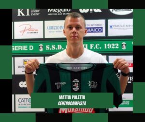Mattia Poletto nato a Pordenone il 1° luglio 1999, centrocampista, vanta 137 presenze in serie D. E’ cresciuto nel settore giovanile dell’Inter, sbocciato nel Tamai (dal 2016 al 2018), poi Lecco (2018-19) dove ha vinto il campionato, è quindi passato in forza al Mestre (23 presenze e 1 gol) e all’Union San Giorgio Sedico (26 presenze e 1 gol al Porto Tolle). Nella scorsa stagione ha giocato nel Cjarlin Muzane, girone C della D (squadra di Muzzana del Turgnano, provincia di Udine). E’ uno degli over, giocatore di categoria.