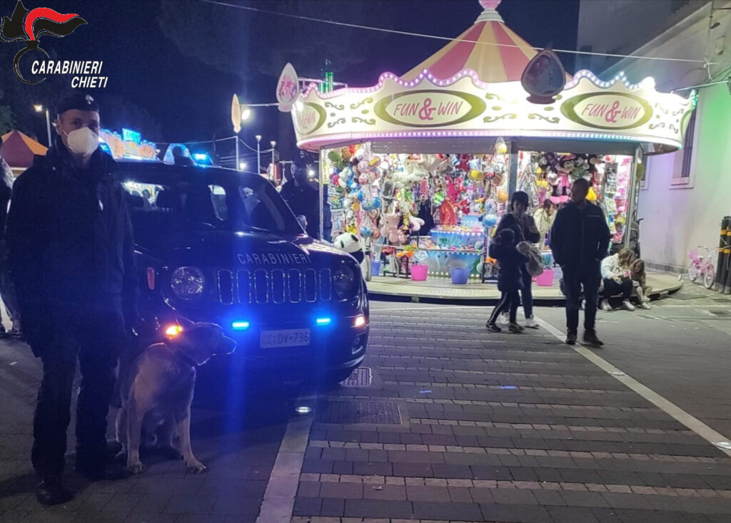 La compagnia dei carabinieri di Ortona nel weekend del 1° Maggio ha attuato un servizio di controllo del territorio che si è concentrato ad Ortona dove si sta svolgendo la storica festa del Perdono ed in onore di San Tommaso Apostolo e a Fossacesia Marina dove si sviluppa il fenomeno della “movida”. Ad Ortona sono stati svolti capillari controlli in tutto il centro urbano con particolare attenzione ai due luna park allestiti al parco Ciavocco e nel piazzale dello stadio comunale nonché lungo la Passeggiata Orientale, dove si sono tenuti due eventi musicali, e quindi ai diversi bar delle aree interessate. In supporto ai carabinieri della compagnia è intervenuta da Chieti anche un’unità antidroga con il pastore belga Axel,che ha aiutato i militari ad individuare due giovani ortonesi che, grazie al suo fiuto, sono stati trovati in possesso di modiche quantità di marijuana, hashish e cocaina: entrambi sono stati segnalati alla prefettura di Chieti e rischiano diverse sanzioni amministrative tra cui la sospensione della patente di guida, il ritiro dei documenti validi per i viaggi all’estero ecc. A Fossacesia Marina invece, già dal primo pomeriggio, è stato predisposto un accurato filtraggio dei veicoli in transito nonché un controllo dei locali dov’erano in corso intrattenimenti con musica. A fine serata 6 automobilisti sono risultati positivi all’alcoltest ed a 5 di loro è stata ritirata la patente di guida mentre per tre di loro,in considerazione del tasso alcolemico particolarmente elevato, è scattata la denuncia in stato di libertà alla Procura della Repubblica di Lanciano per guida in stato di ebbrezza.Oltre alle sanzioni penali ed amministrative sarà disposta la sospensione della patente di guida da un mese e fino a due anni.