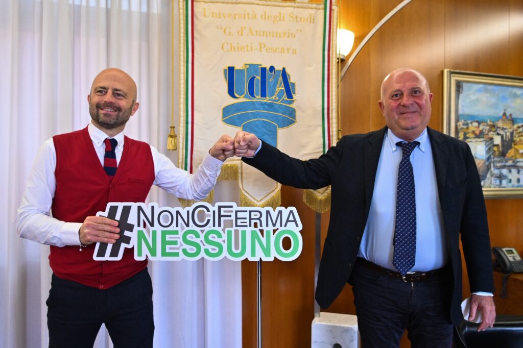 Tornano i selfie, i sorrisi e la voglia di stare insieme. Luca Abete ritrova a Chieti la platea di studenti che, da otto anni, è la vera anima del tour #NonCiFermaNessuno. Il ritorno in presenza all’Università “Gabriele d’Annunzio” segna un passo, per certi versi, storico e predispone il cuore alla speranza come hanno gridato a gran voce tutti, dal rettore ai docenti fino ai ragazzi, tornati a gremire l’aula con grande entusiasmo.