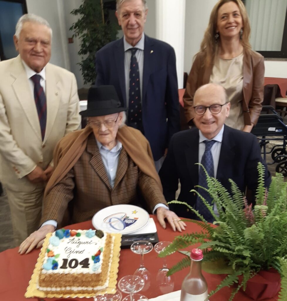 Auguri importantissimi quelli che il sindaco Diego Ferrara ha portato oggi al concittadino Gino De Amicis, che compie la bellezza di 104 anni! Una grande età, forse fra le più grandi di Chieti, accompagnata da altrettanto grande affetto, nonno Gino ha festeggiato al Bar Teate attorniato dai due figli, le famiglie, nipoti e pronipoti, pronto a dispensare ricordi e aneddoti della sua lunga vita. Classe 1917, soldato in Albania, ragioniere dei Coltivatori diretti, innamorato sempre della moglie Marcella che se n’è andata nel 2008, oggi vive raccontando e tenendosi informato sulla sua città, legge il Centro e il Messaggero e dispensa ricette di lunga vita a quanti gli fanno speciali auguri per la sua età d’oro. Ai tanti si aggiungono anche quelli dell’Amministrazione e della città! Auguri!!!
