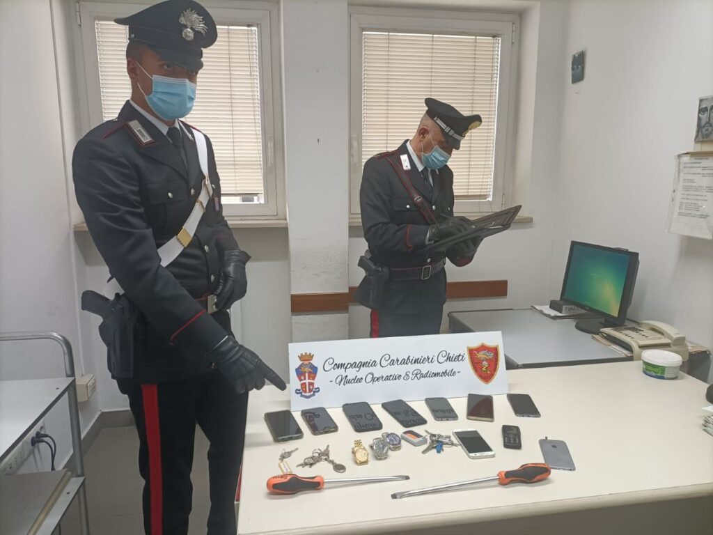Due cacciaviti di grandi dimensioni con punta a taglio (marca Beta), quattro telefoni smartphone marca Samsung, un telefono smartphone marca “Redmi”, un telefono marca “Brondi”, una parte posteriore di telefono Apple iPhone, un telefono smartphone marca “Oppo” , un telefono smartphone iPhone (probabilmente 11 pro), un telefono smartphone iPhone (probabilmente 12 pro), un mazzo di 6 chiavi con telecomando “Vds”, un mazzo di 4 chiavi, una chiave singola con etichetta riportante scritta “ufficio Carla”, due orologi marca tipo “Rolex” in acciaio modello. Submariner, un orologio marca tipo “Rolex” modello . Datejust in oro (oppure in metallo placcato oro). Si tratta del materiale sequestrato alle tre persone di origine Sinti, arrestati dai Carabinieri della Compagnia di Chieti nel capoluogo teatino, la sera del 2 ottobre scorso, con l’accusa di aver commesso un furto su autovettura e tentato furto aggravato in abitazione. All’udienza di convalida che si è tenuta il 4, il giudice del Tribunale di Chieti, dottor Maurizio Sacco, ha disposto la custodia cautelare in carcere dei due uomini originari del lazio mentre per la donna, cugina dei due, originaria di Città Sant’Angelo, ha disposto la misura cautelare dell’obbligo di dimora in quel paese. I due fratelli sono stati associati presso la casa circondariale di Frosinone. La divulgazione avviene nel dettaglio affinché venga agevolato il riconoscimento del materiale sequestrato da parte dei derubati