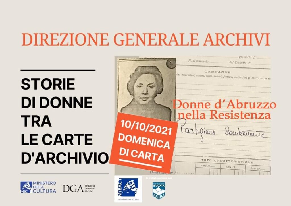 L’Archivio di Stato di Chieti, in occasione della giornata Domenica di Carta 2021, proporrà una mostra documentale sulle donne partigiane dal titolo: Donne d’Abruzzo nella resistenza”.
