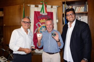 Passaggio anche a Chieti per Cesare Fiorio, uno dei manager sportivi italiani più importanti e noti a livello internazionale. La tappa in città, in occasione della consegna della tessera di socio onorario del club Ruote classiche teatine, lo ha visto in Comune, dove è stato ricevuto dal vicesindaco Paolo De Cesare e dal presidente del club Filippo Rosa, alla presenza del direttore dell’ACI Chieti, Roberto D’Antuono il quale ha consegnato a Fiorio anche la tessera di socio ACI storico. “Un professionista dalla storia davvero eccezionale- dice il vicesindaco De Cesare – per anni è stato direttore sportivo della Lancia e poi della Ferrari, ai tempi di Prost e Mansell. Un vero e proprio uomo dei record: 18 titoli mondiali vinti e tuttora detiene anche il record da Guinness dei Primati per la traversata dell’Oceano Atlantico in barca effettuata a bordo del famoso scafo ipertecnologico, il “Destriero”, che che il 9 agosto 1992 percorse 3.106 miglia nautiche senza rifornimento sull’Oceano Atlantico, da New York al faro di Bishop Rock nelle Isole Scilly, in Inghilterra, in 58 ore, 34 minuti e 50 secondi. Siamo stati davvero felici di ospitarlo, seppur per una tappa breve e lui è rimasto piacevolmente sorpreso dalla bellezza della nostra città, dove non era mai stato prima e dove lo abbiamo invitato a tornare”.
