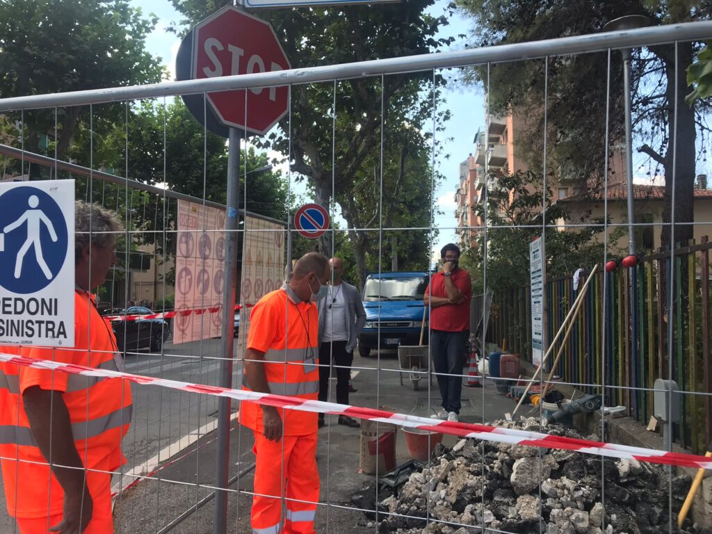 Sono iniziati i lavori di realizzazione della pista ciclabile di Chieti Scalo ad opera della ditta IMBIMBO Costruzioni Srl di Avellino e finanziati con fondi Por Fesr Abruzzo 2014/2020 Asse VII – Sviluppo Urbano Sostenibile -Azione 4.6.4 che prevedono interventi per un importo di 356.500 euro. Sul cantiere dell’appalto, aperto oggi su via Pescara, incrocio con via Teramo, stamane si sono recati l’assessore ai Lavori Pubblici, Stefano Rispoli e il consigliere comunale Enrico Iezzi, con il titolare della ditta e la direttrice dei lavori, l’ingegner Alessandra Schiappa. “Al via una delle opere che migliorerà la sostenibilità della circolazione a Chieti Scalo – dicono il sindaco Diego Ferrara e l’assessore ai Lavori Pubblici Stefano Rispoli. Si tratta di un progetto atteso, che una volta insediati abbiamo subito sollecitato, perché diventasse realtà al più presto, quello della pista ciclopedonale di 4 chilometri di percorso che da via Amiterno arriva al Campus universitario. I lavori sono partiti dal primo tratto di via Pescara, dove la pista si articolerà sul marciapiede destro in direzione Stadio, per passare, da progetto originario, sul lato sinistro della strada, sempre sul marciapiedi, in modo da agevolare al meglio la circolazione sulla via, passando anche su via Palizzi, via Bellini, via Caduti sul Lavoro , via Amiterno e, infine, approdando allo Stadio Angelini. Stiamo vagliando anche alcuni aggiustamenti, in nome di una maggiore sicurezza del transito di tutte le utenze, sia i pedoni, che i ciclisti e gli automobilisti, intervenendo anche su via Pescara.