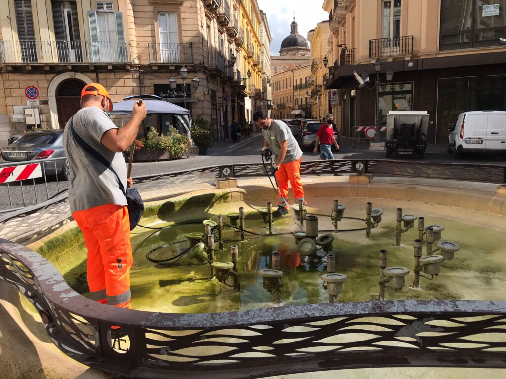 Giornata di pulizia e manutenzione sulle fontane cittadine, stamane è stata di nuovo la volta dell’impianto di piazza Valignani, ma a breve si interverrà anche su quella di piazzale Marconi. Non solo igiene, ma anche ristoro dai danni subiti dalla fontanella di acqua pubblica di Sant’Anna che per la seconda volta in pochi giorni è stata manomessa e resa impraticabile. “L’attenzione alle fontane da parte dell’Amministrazione è costante – dicono il sindaco Diego Ferrara e gli assessori a Lavori Pubblici e all’Ambiente e Transizione ecologica Stefano Rispoli e Chiara Zappalorto – siamo tornati a pulire la fontana di piazza Valignani a circa un mese dalla precedente manutenzione perché si erano riformate delle alghe maleodoranti all’interno della vasca che rendevano indecoroso l’impianto, posto proprio al centro della città. A breve interverremo anche sulla fontana di piazzale Marconi per la pulizia, inoltre Formula Ambiente utilizzerà sostanze ecocompatibili per contrastare il proliferare di presenze infestanti e conservare più a lungo gli impianti puliti e dignitosi a beneficio della popolazione residente e anche dei turisti. Interverremo duramente, invece, contro i vandali che nel giro di pochi giorni hanno manomesso la fontanella pubblica di Sant’Anna. Un gesto davvero deplorevole, non solo perché si danneggia la cosa pubblica che è patrimonio di tutti, ma anche perché il danno ha causato la perdita di litri e litri d’acqua, cosa che in questo periodo di emergenza è un vero insulto nei confronti dei tanti concittadini che vivono disagi legati all’assenza di flusso idrico nelle case e nelle attività, anche a Sant’Anna. Torneremo a riparare nuovamente quell’impianto, ma andremo oltre, perché abbiamo chiesto la possibilità di accedere alle telecamere presenti nella zona al fine di poter arrivare a individuare i vandali che hanno letteralmente rotto il rubinetto più di una volta. La civiltà di una città si vede anche da questo, Chieti deve tenere alle sue bellezze, deve tutelarle e per tale ragione saremo durissimi una volta individuati i danneggiatori, perché questi gesti, che di certo appartengono alla cultura di pochi, non si ripetano in futuro”.