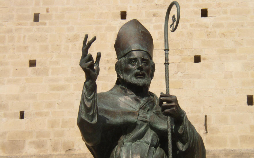 Dunque, l’anno della sua morte è incerto, tuttavia sappiamo che fu sepolto nella cattedrale innalzata sui resti di un tempio romano di Ercole, dedicata inizialmente a Santa Maria Assunta nel VI secolo, poi a San Tommaso dopo il sacco dei Franchi di Pipino Carlomanno nell’801, intitolata, infine, al vescovo Giustino dall’XI secolo, come attestato dai documenti del periodo normanno a noi pervenuti.