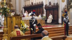 Prima che venisse impartita la benedizione finale, Forte ha ringraziato “sua eminenza per la sua testimonianza, di uomo, di cristiano, di sacerdote di Cristo, di vescovo al servizio del popolo di Dio, grazie per il messaggio che ci ha trasmesso meditando sulla Parola di Dio e su San Giustino che è un vangelo vivente in questa città, grazie per le indicazioni di vita pastorale vissuta. Le chiediamo di portare al Santo Padre Francesco i sensi della nostra più viva comunione e obbedienza, preghiamo per lui e con lui e vogliamo essere docili alla sua parola, al suo insegnamento al servizio di tutto il popolo di Dio. Ricordi tutta la chiesa di Chieti Vasto nella sua preghiera e nel suo cuore e se possibile torni, ci fa piacere”. Ultimo atto dell’alto prelato è stata la benedizione degli scavi in corso sulla piazza assolata. Un gesto che molti vogliono interpretare come auspicio di ripresa della città sia dalla pandemia che dalla crisi che ormai da tempo la pervade.