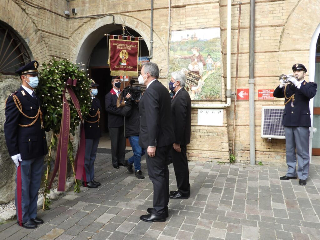 Si è svolta anche a Chieti la cerimonia celebrativa per il 169° Anniversario della Fondazione della Polizia di Stato e, come lo scorso anno, ha visto la sola deposizione della corona d’alloro al cippo dedicato ai caduti nella caserma Spinucci, alla presenza del prefetto Armando Forgione, del questore Annino Gargano e di una ristretta rappresentanza del personale della Questura e delle Specialità della Polizia di Stato operanti nella provincia, nel rispetto del normativa per il contenimento del contagio. Nella circostanza, con una breve preghiera, sono state ricordate le donne e gli uomini della Polizia di Stato che hanno sacrificato la vita nell’adempimento del dovere e che l’hanno persa a causa del Covid. L’attività della Polizia di Stato nella provincia di Chieti, durante l’ultimo anno, è stata rivolta principalmente alla prevenzione dei reati e alla tutela della sicurezza e della salute dei cittadini, ponendo costante attenzione alle verifiche sul rispetto della normativa per il contrasto alla diffusione del contagio. In particolare le richieste di intervento da parte dei cittadini giunte sulla linea di emergenza 113 sono state 36.381 e numerosi sono stati i servizi di controllo del territorio espletati che hanno portato all’identificazione di 33.362 persone e al controllo di 18.460 veicoli: nell’occasione sono state contestate 7041 infrazioni al Codice della Strada, rilevate 809 violazioni alla normativa sulle misure di contenimento della diffusione del virus e denunciate 29 persone per aver violato l’obbligo di quarantena, mentre gli esercizi pubblici e commerciali controllati sono stati 25.712, di cui 27 sono stati sanzionati per non aver rispettato la stessa normativa. Di rilievo, altresì, è stata l’attività di polizia giudiziaria che ha portato all’arresto di 117 persone, alla denuncia in stato di libertà di 486 persone nonché al sequestro complessivo di oltre 47 chilogrammi di sostanze stupefacenti. Significative le operazioni condotte nei mesi di aprile e luglio dai Commissariati di Pubblica Sicurezza di Vasto e Lanciano e dalla Squadra Mobile: la prima, denominata “Repulisti”, ha portato all’arresto di 5 persone ed alla denuncia in stato di libertà di altre 13 persone, per lo più di etnia rom, resesi responsabili in concorso tra loro dei reati di detenzione ai fini di spaccio di sostanze stupefacenti, usura, estorsione, detenzione di armi alterate e detenzione di banconote false, cui è scaturito il sequestro di 200 grammi di cannabinoidi, di una pistola cal. 7,65 alterata e di altre armi, nonché di 4.320 euro in banconote false e di circa 21.000 euro provento di reato. La seconda ha portato all’arresto di 7 persone di etnia rom ed all’obbligo di presentazione alla P.G. per altre 4, che si sono rese responsabili di rissa e lesioni aggravate a seguito di una spedizione punitiva organizzata per regolare vecchi rancori tra due famiglie. Inoltre particolare attenzione è stata posta al contrasto dei reati contro la persona ed il patrimonio, soprattutto nei confronti degli anziani vittime di truffe e delle fasce deboli, anche vittime di violenza di genere, per cui sono stati operati arresti in flagranza di reato o in esecuzione di provvedimenti cautelari dell’Autorità giudizaria e applicate diverse misure di divieto di avvicinamento alle parti offese. Quanto all’attività di polizia amministrativa e di sicurezza, sono stati rilasciati 2695 permessi di soggiorno ed espulsi 36 stranieri. Sono stati emessi inoltre 91 avvisi orali, 45 fogli di via obbligatorio, 2 sorveglianze speciali, 3 D.A.SPO., nonché diversi ammonimenti per stalking. Sul fronte della gestione dell’ordine e della sicurezza pubblica sono stati disposti 978 servizi di ordine pubblico per altrettante manifestazioni, cui hanno attivamente partecipato anche le altre Forze di Polizia, senza che si verificassero turbative.