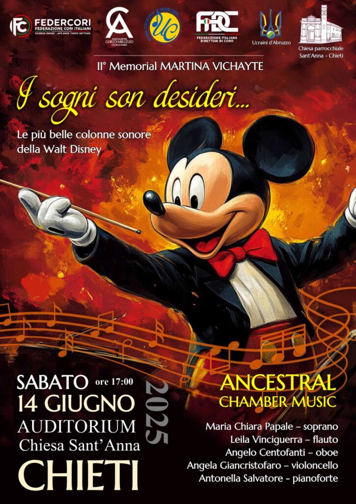 Appuntamento per grandi e piccini all’auditorium della Chiesa S.Anna di Chieti.Sabato 14 Giugno si terrà l’evento musicale “I sogni son desideri…”, una raccolta delle più belle e famose colonne sonore della Walt