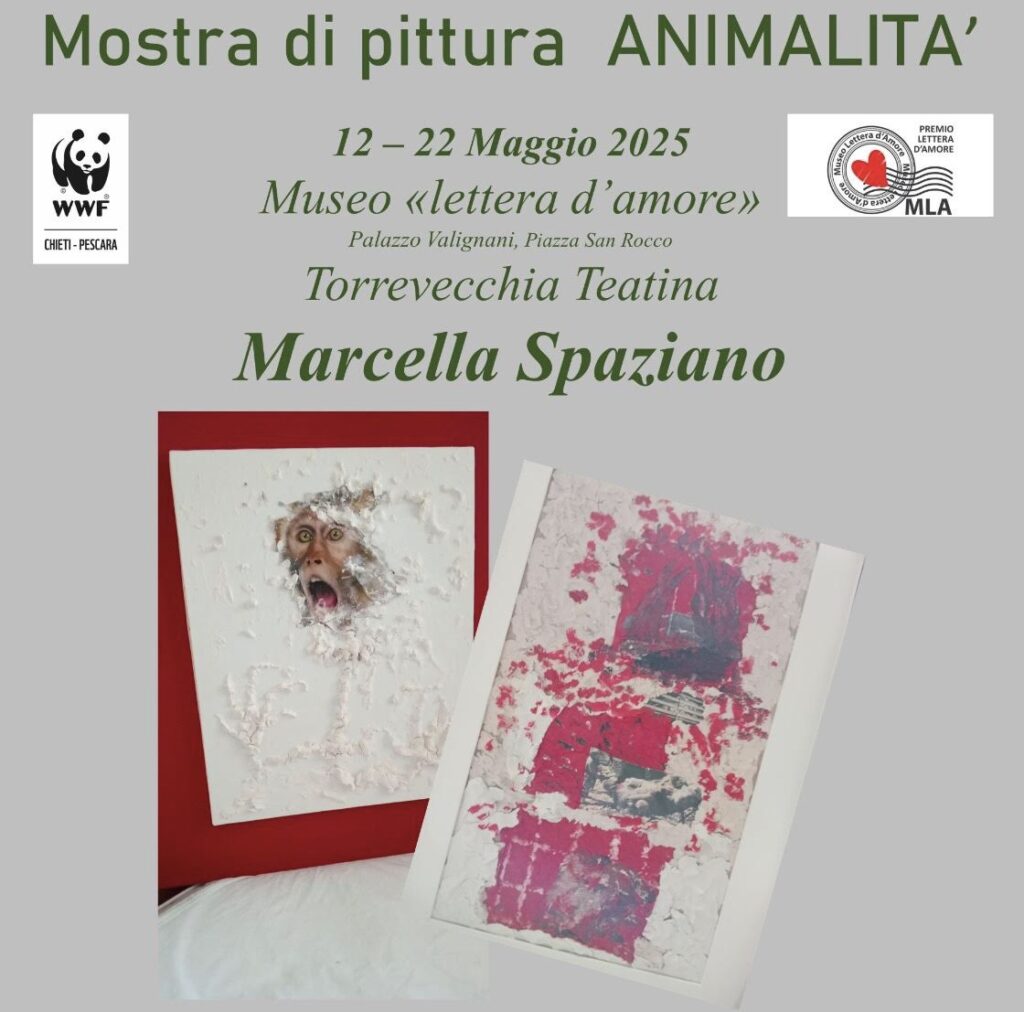 Lunedì 12 maggio 2025 alle ore 10 presso il Museo della Lettera d’Amore sarà inaugurata la mostra di pittura “Animalità” di Marcella Spaziano. La presentazione avverrà nella sala consiliare del Palazzo Valignani