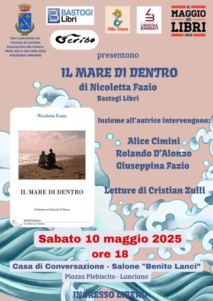 Si terrà domani, sabato 10 maggio, alle 18, presso il Salone “Benito Lanci” della Casa di Conversazione di Lanciano, la presentazione della nuova raccolta di poesie di Nicoletta Fazio, “Il mare di
