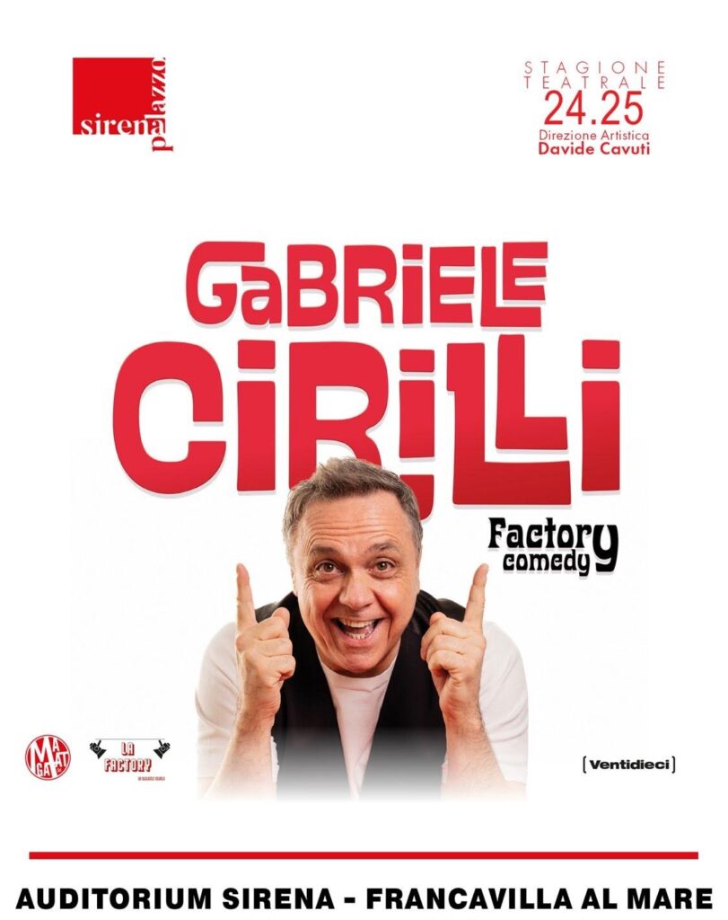 Sabato 3 maggio 2025 (alle ore 21) Gabriele Cirilli sarà il protagonista del penultimo appuntamento della Stagione Teatrale dell’Auditorium Sirena di Francavilla al Mare diretta dal compositore e regista Davide Cavuti. Dopo