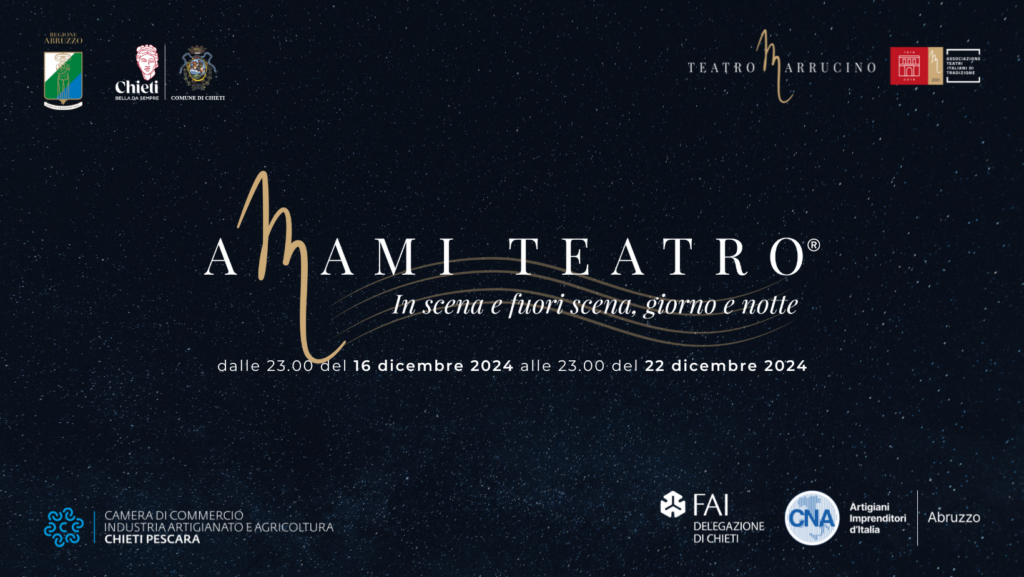Al teatro Marrucino di Chieti torna “Amami Teatro” dalle ore 23:00 del 16 dicembre alle 23:00 del 22 dicembre 2024. Siete pronti a lasciarvi travolgere? 8.640 minuti di spettacolo dal vivo, giorno