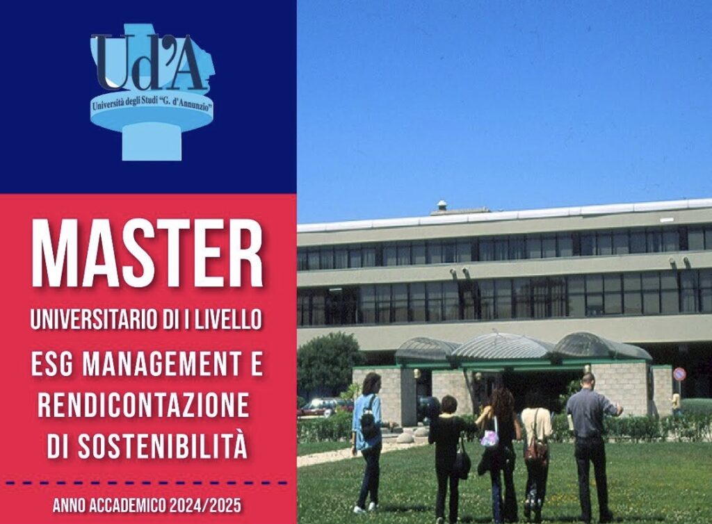 Sono aperte le iscrizioni al Master Universitario di I Livello in “ESG Management e Rendicontazione di Sostenibilità”, promosso dal Dipartimento di Economia (DEc) dell’Università degli Studi “Gabriele d’Annunzio” di Chieti-Pescara e dall’Osservatorio