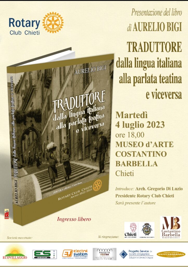 Martedì 4 luglio 2023, con inizio alle ore 18,00 al Museo d’Arte Costantino Barbella di Chieti il Rotary Club di Chieti presenterà il libro scritto dal Rotariano Aurelio Bigi. Un volume di
