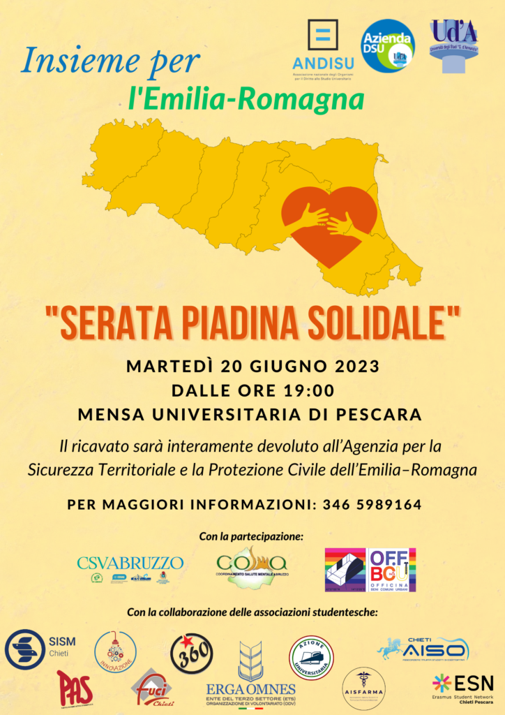 Al fine di sostenere la popolazione dell’Emilia-Romagna colpita dall’alluvione che ha provocato danni ingenti, l’Azienda per il Diritto agli Studi Universitari di Chieti e Pescara, prendendo come riferimento l’iniziativa organizzata da ER.GO
