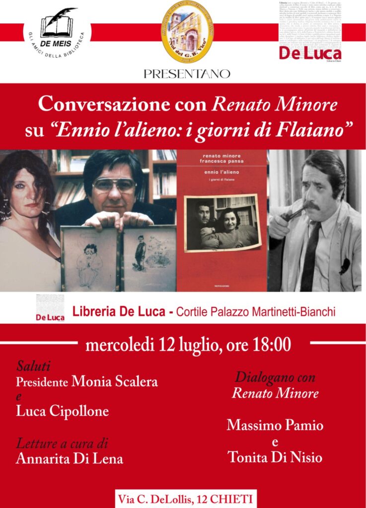 Mercoledì 12 luglio, alle ore 18, nel Cortile del Palazzo Martinetti- Bianchi di Chieti, sarà presentato il libro “Ennio l’alieno- i giorni di Flaiano” di Renato Minore e Francesca Pansa. Torna a