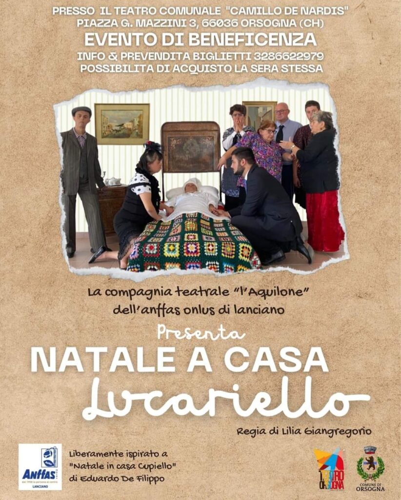 Prosegue la stagione di prosa del Teatro Camillo De Nardis di Orsogna per la direzione artistica di Zenone Benedetto in collaborazione con il circuito regionale ACS e il Comune di Orsogna. Dopo