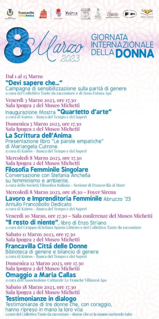 Si terrà il 1 aprile alle 17, nella Galleria Mariz di Francavilla, il secondo evento del Francavilla Urban Festival, con la cerimonia del Premio internazionale Flora per la creatività femminile. Il comitato