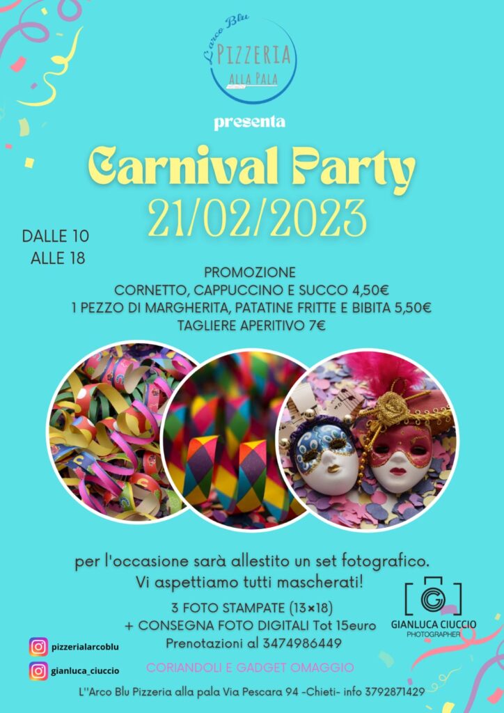 Per la festa più divertente dell’anno la pizzeria “L’arco blu” di Mariapia Amatobene ha organizzato tante sorprese e divertimenti per i bambini e le famiglie. Dalle 10 alle 18 si potranno gustare
