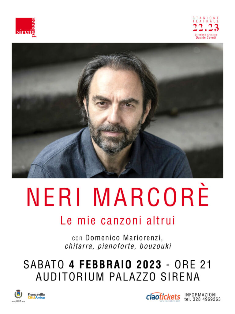 Sabato 4 febbraio, alle ore 21.00, Neri Marcorè sarà protagonista all’Auditorium Sirena dello spettacolo – concerto «Le mie canzoni altrui», accompagnato da Domenico Mariorenzi alla chitarra, bouzouki e pianoforte. L’appuntamento rientra nella