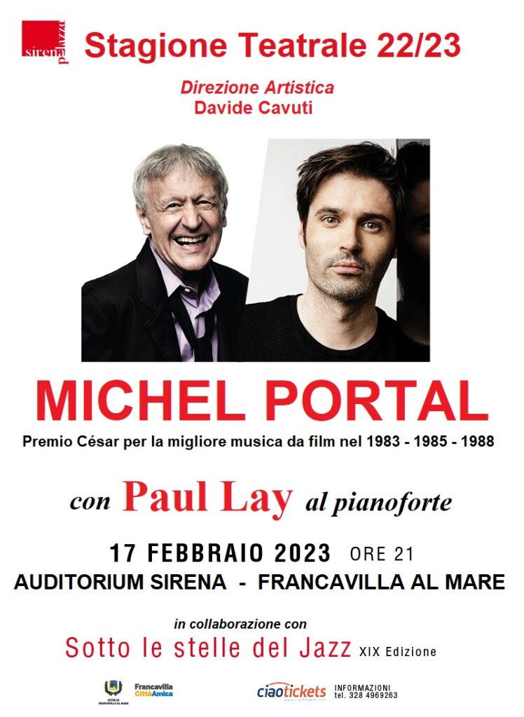 Venerdì 17 febbraio, alle ore 21, all’Auditorium Sirena di Francavilla al Mare si terrà il concerto internazionale con una icona della musica europea il leggendario compositore, sassofonista e clarinettista francese, Michel Portal,
