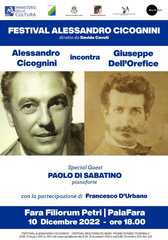 Un appuntamento speciale per celebrare due grandi autori della nostra regione: Alessandro Cicognini (25 gennaio 1906 – 9 novembre 1995) e Giuseppe Dell’Orefice (21 agosto 1848 – Napoli, 4 gennaio 1889) ideato