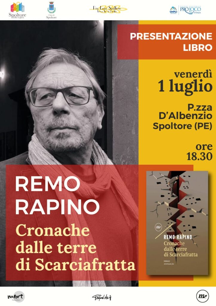 La Pro Loco di Spoltore, Terra dei 5 borghi, propone un appuntamento da non perdere per venerdì 1 luglio alle 18,30 a Spoltore, in Piazza D’Albenzio. Remo Rapino, Premio Campiello 2020 con “Vita,