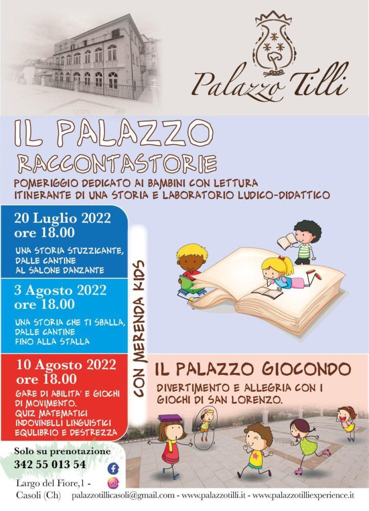Gli appuntamenti per i più piccoli saranno tre e si svolgeranno nei pomeriggi del 20 luglio, del 3 agosto e del 10 agosto, tutti alle ore 18, con ingresso su prenotazione (al