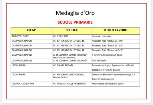 La classe 5B dell’a.s. 2024/2025 della Scuola primaria Via Amiterno dell’Istituto comprensivo 3 di Chieti, capitanata dalla docente Marina Screpanti, ha conquistato la medaglia d’oro nel concorso “Monumenti sonori /voci delle scuole