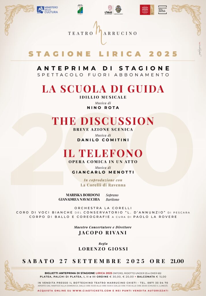 Il Teatro Marrucino si prepara ad alzare il sipario sulla nuova Stagione Lirica 2025, che prenderà il via il prossimo sabato 27 settembre con un’anteprima esclusiva. Anche quest’anno, dopo il successo della