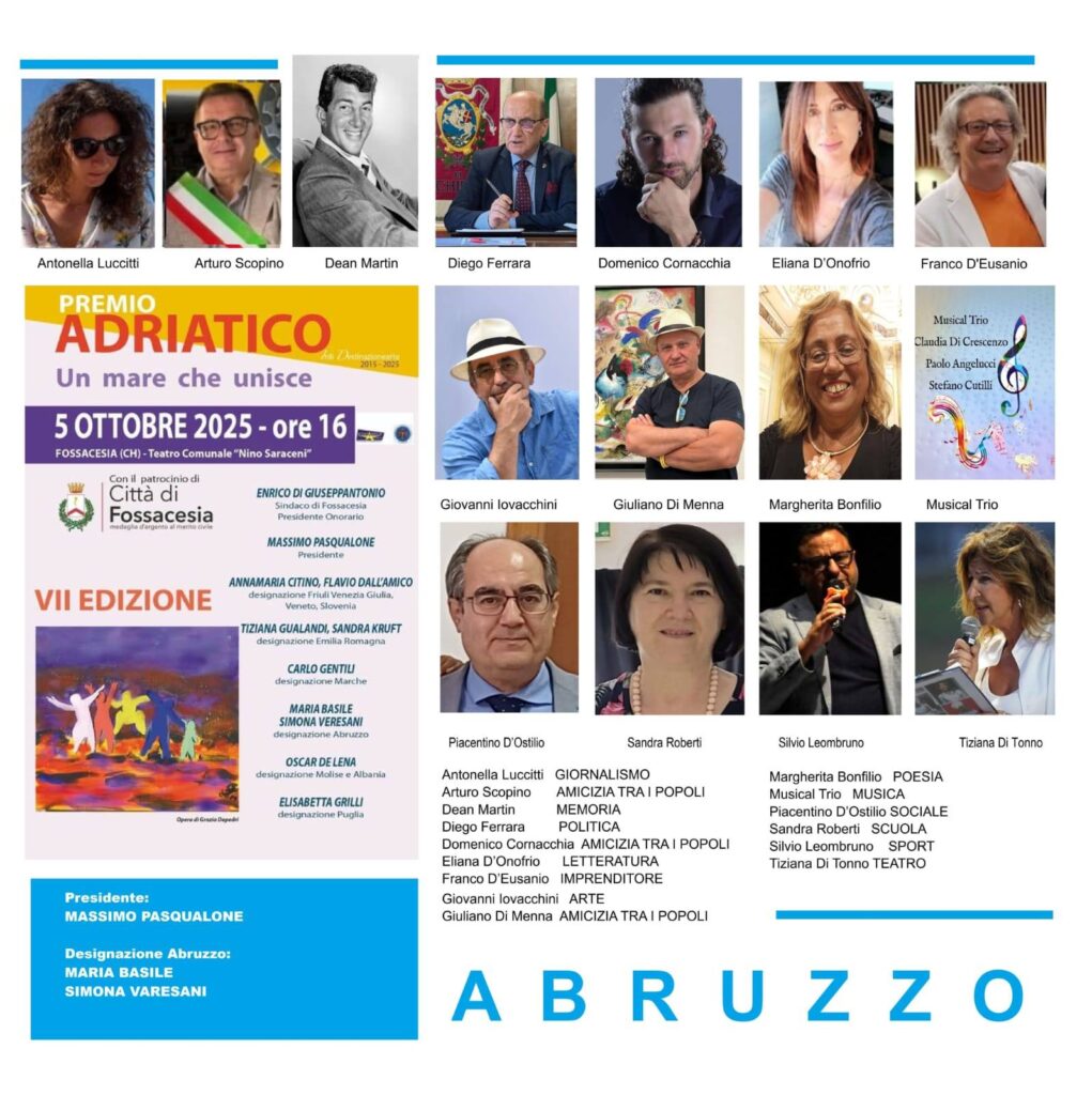 Un nuovo appuntamento organizzato dall’associazione culturale Irdidestinazionearte, coordinato dall’artista Maria Basile, referente abruzzese, porterà domenica 5 ottobre dalle ore 16 al teatro Nino Saraceni di Fossacesia (CH) la 7^ edizione del Premio