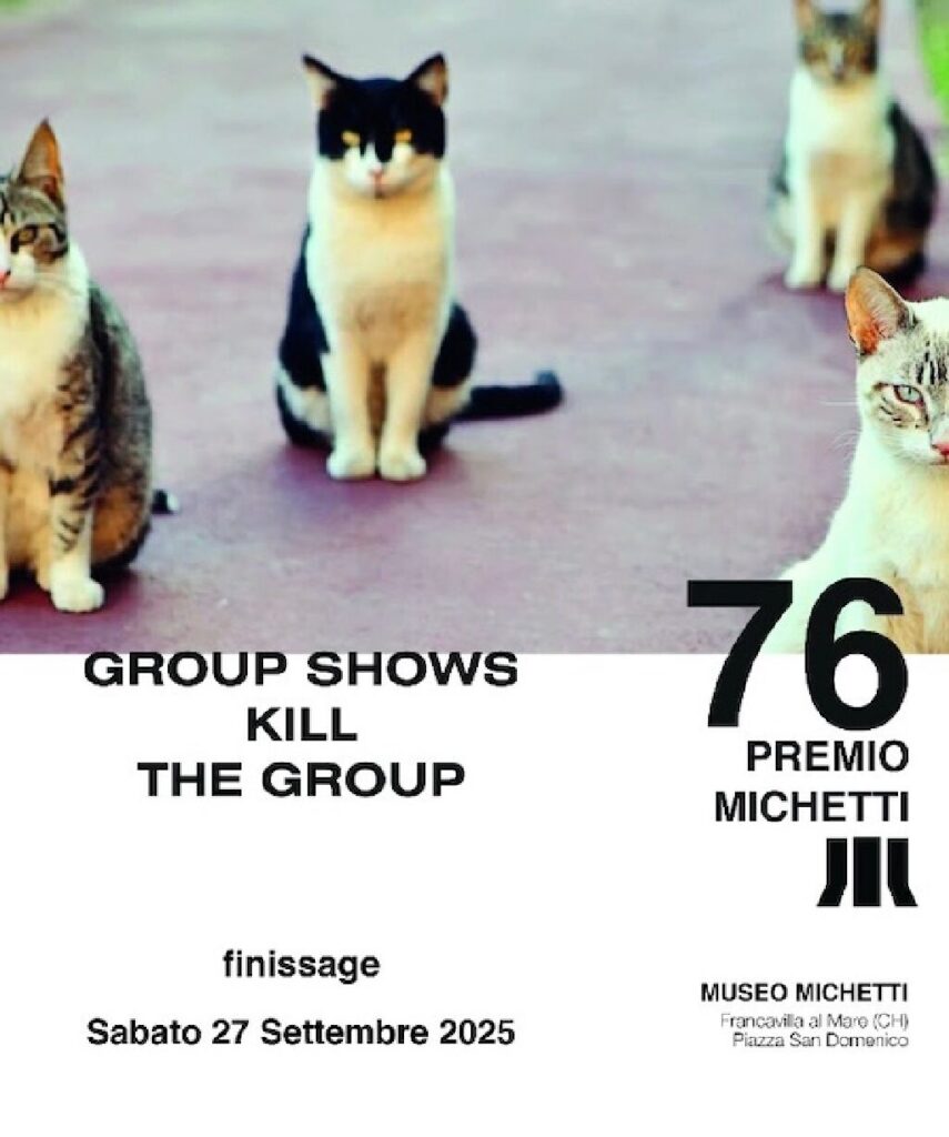 La Fondazione Michetti annuncia che la mostra della 76esima edizione del Premio Michetti, Group Shows Kill the Group, a cura di Massimiliano Scuderi, è stata prorogata fino a domenica 28 settembre 2025.